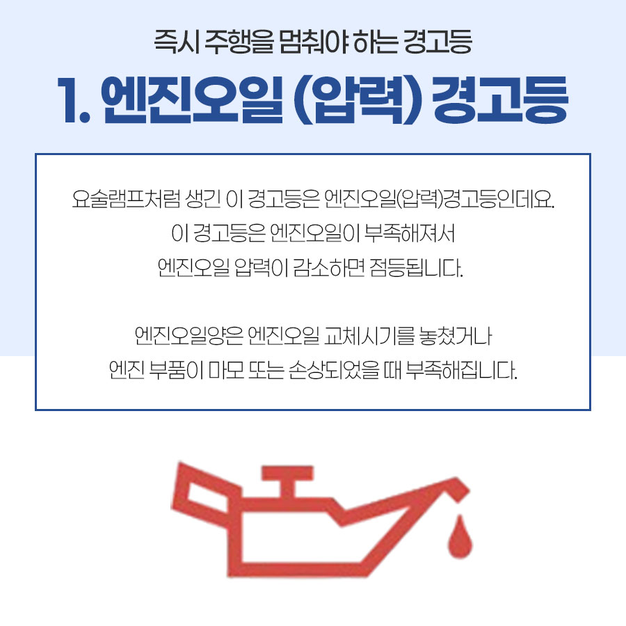 이 경고등은 엔진오일이 부족 해져